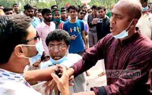 তখন বঙ্গবন্ধু পরিষদ শিক্ষক ইউনিটের শিক্ষকরা ফুল দিতে বেদিতে উঠতে গেলে নিরাপত্তার দায়িত্বে থাকা সহকারী প্রক্টর ড. শফিকুল ইসলামের সঙ্গে তাদের বাকবিতন্ডা হয়।