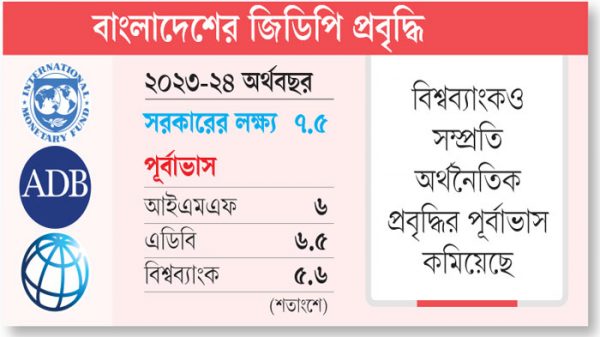 ঢাকা অফিস ।। বাংলাদেশের মোট দেশজ উৎপাদনে (জিডিপি) প্রবৃদ্ধির পূর্বাভাস কমালো আন্তর্জাতিক মুদ্রা তহবিল (আইএমএফ)। গতকাল মঙ্গলবার প্রকাশিত আইএমএফের ওয়ার্ল্ড ইকোনমিক আউটলুকে বলা হয়েছে, চলতি ২০২৩-২৪ অর্থবছরে বাংলাদেশের জিডিপি প্রবৃদ্ধি