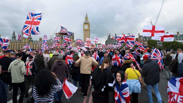 এনএনবি : যুক্তরাজ্যের অভিবাসনবিরোধী ও ইসলামবিরোধী ডানপন্থী আন্দোলনকারী টমি রবিনসনের ডাকা প্রতিবাদ আয়োজনে সাড়া দিয়ে লন্ডনের কেন্দ্রীয় অংশের রাস্তাগুলো দিয়ে মিছিল করেছে লাখো বিক্ষোভকারী। শনিবারের এ আয়োজনে অংশগ্রহণকারীরা ইংল্যান্ডের ও