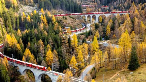 আল্পস পর্বতের গা ঘেঁষে বিশ্বের সবচেয়ে দীর্ঘ যাত্রীবাহী ট্রেন চালিয়ে নতুন রেকর্ড গড়েছে সুইজারল্যান্ডের একটি রেলওয়ে পরিচালনা প্রতিষ্ঠান। ট্রেনটি ১ দশমিক ৯ কিলোমিটার লম্বা। এতে আছে ১০০ বগি। ১৫০ যাত্রী