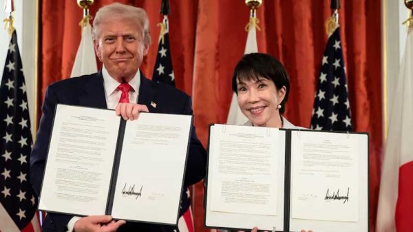 এনএনবি : জাপানের রাজধানী টোকিওয় প্রধানমন্ত্রী সানায়ে তাকাইচির প্রশংসা করেছেন যুক্তরাষ্ট্রের প্রেসিডেন্ট ডনাল্ড ট্রাম্প। প্রথম একজন নারী প্রধানমন্ত্রী হওয়া ‘বড় ব্যাপার’ বলে মন্তব্য করেন তিনি। মাত্র এক সপ্তাহ আগে সানায়ে