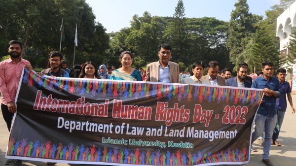 কাগজ প্রতিবেদক ॥ আন্তর্জাতিক মানবাধিকার দিবস-২০২২ উপলক্ষে ইসলামী বিশ^বিদ্যালয়ে (ইবি) র্যালী অনুষ্ঠিত হয়েছে। শনিবার (১০ ডিসেম্বর) বিশ্ববিদ্যালয়ের আইন ও ভূমি ব্যবস্থাপনা বিভাগ এ র্যালির আয়োজন করে। বেলা সোয়া ১১ টার