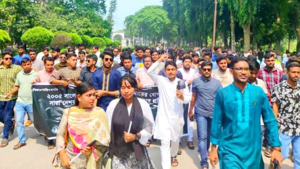 কাগজ প্রতিবেদক ॥ ইসলামী বিশ্ববিদ্যালয়ে সন্ত্রাস ও জঙ্গিবাদ মূলোৎপাটনের দাবিতে বুধবার কালো পতাকা কর্মসূচি ও বিক্ষোভ মিছিল অনুষ্ঠিত হয়েছে। গতকাল দুপুর দেড়টায় বিশ্ববিদ্যালয়ের ছাত্রলীগের উদ্যোগে এ কর্মসূচি অনুষ্ঠিত হয়। জানা