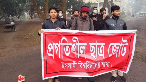 কাগজ প্রতিবেদক ॥ সিলেটের শাহজালাল বিজ্ঞান ও প্রযুক্তি বিশ্ববিদ্যালয়ের (শাবিপ্রবি) ভিসির পদত্যাগের দাবিতে ইসলামী বিশ্ববিদ্যালয়ে (ইবি) বিক্ষোভ মিছিল ও সমাবেশ করেছে প্রগতিশীল ছাত্রজোট। গতকাল রোববার দুপুর ২টায় বিশ্ববিদ্যালয়ের ঝাল চত্বর