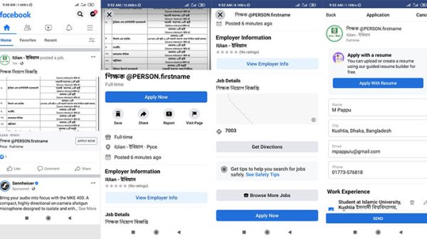কাগজ প্রতিবেদক ॥ সামাজিক যোগাযোগ মাধ্যম ফেসবুকের একটি পেজের মাধ্যমে ইসলামী বিশ্ববিদ্যালয়ের (ইবি) শিক্ষক নিয়োগের আবেদন প্রক্রিয়া সম্পন্ন করার অপশন পাওয়া যাচ্ছে বলে খোঁজ পাওয়া গেছে। তবে এ প্রক্রিয়াটি সম্পূর্ণ