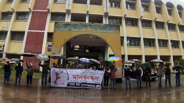 কাগজ প্রতিবেদক ॥ বেগম খালেদা জিয়ার মুক্তি ও উন্নত চিকিৎসার জন্য বিদেশ প্রেরণের দাবিতে মানববন্ধন করেছে ইসলামী বিশ্ববিদ্যালয় (ইবি) সাদা দল। সোমবার বেলা ১১ টায় বিশ্ববিদ্যালয়ের অনুষদ ভবনের সামনে এ