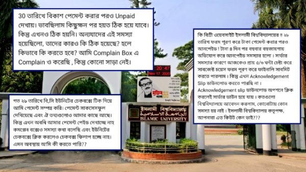 কাগজ প্রতিবেদক ॥ ইসলামী বিশ্ববিদ্যালয়ের (ইবি) ২০২০-২১ শিক্ষাবর্ষের স্নাতক (সম্মান) শ্রেণির প্রথম বর্ষের ভর্তি আবেদনে ফি পরিশোধ নিয়ে বিড়ম্বনায় পড়ছেন ভর্তিচ্ছুরা। একাউন্ট থেকে টাকা কেটে নেওয়ার পরেও ওয়েবসাইটে ‘আনপেইড’ দেখাচ্ছে