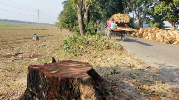 কাগজ প্রতিবেদক ॥ কুষ্টিয়ার কুমারখালীতে পান্টি – বাঁশগ্রাম সড়কের কাঁচিকাটা সেতু, ভাদুরমোড় থেকে আদাবাড়িয়া পর্যন্ত প্রায় এক কিলোমিটার সড়কের অন্তত ৫৪টি গাছ রাতের আধারে কেটে নিয়েছে দুর্বৃত্তরা। প্রায় ৩০ -৪০