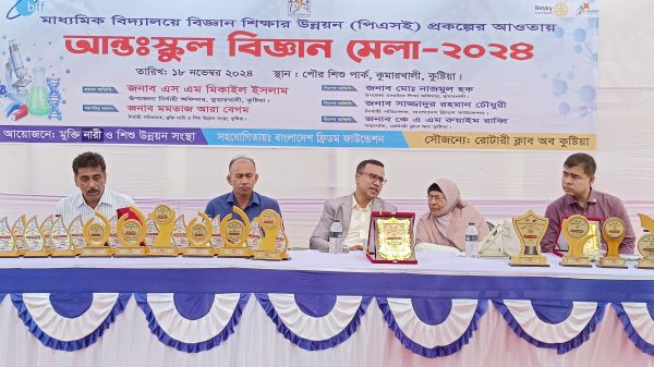 কাগজ প্রতিবেদক ॥ কুষ্টিয়ার কুমারখালীতে মাধ্যমিক বিদ্যালয়ে বিজ্ঞান শিক্ষার উন্নয়ন (পিএসই) প্রকল্পের আওতায় দিনব্যাপী আন্তঃস্কুল বিজ্ঞান মেলা ও পুরস্কার বিতরণ অনুষ্ঠিত হয়েছে। রোটারি ক্লাব অব কুষ্টিয়ার সৌজন্যে বাংলাদেশ ফ্রিডম ফাউন্ডেশনের