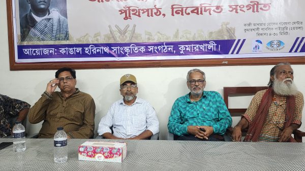 কাগজ প্রতিবেদক ॥ কুষ্টিয়ার কুমারখালীতে অগ্নিযুগের মহানায়ক ব্রিটিশ বিপ্লবী বাঘা যতীনের ১১০তম প্রয়াণ দিবস পালন করা হয়েছে।বুধবার বিকাল সাড়ে ৪টায় কুষ্টিয়ার কুমারখালী পাবলিক লাইব্রেরির কাজী আকতার হোসেন গবেষণা কেন্দ্রে কাঙ্গাল