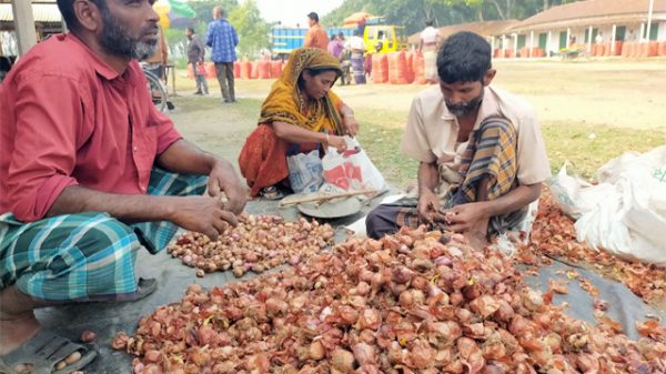 কাগজ প্রতিবেদক ॥ প্রতি রোববার কুমারখালী উপজেলার চৌরঙ্গী মহাবিদ্যালয় মাঠে বসে সাপ্তাহিক পেঁয়াজের হাট। সকাল সাড়ে ১০টায় হাটে গিয়ে দেখা যায়, কৃষক বা বিক্রেতাদের আনাগোনা নেই। ব্যবসায়ীরা পেঁয়াজ বস্তায় ভরার
