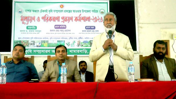 কুমারখালী প্রতিনিধি ॥ কুষ্টিয়ায় উপজেলা পর্যায়ে ‘যশোর অঞ্চলে টেকসই কৃষি সম্প্রসারন প্রকল্পের’ মূল্যায়ন ও পরিকল্পনা প্রনয়ন বিষয়ক কর্মশালা অনুষ্ঠিত হয়েছে। মঙ্গলবার সকাল ১০টায় কুষ্টিয়া সদর উপজেলা মিলনায়তনে উপজেলা কৃষি সম্প্রসারন