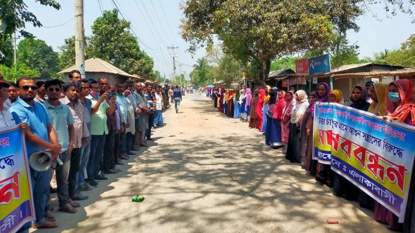 কাগজ প্রতিবেদক ॥ কুষ্টিয়ার কুমারখালী উপজেলার উত্তর চাঁদপুর মাধ্যমিক বিদ্যালয় ও ওই গ্রামের কয়েকটা বাড়িতে অগ্নিকান্ডের ঘটনার প্রতিবাদে সড়কে বাঁশ বেঁধে মানববন্ধন ও বিক্ষোভ করেছে এলাকাবাসী। মঙ্গলবার সকাল ১১ টায়