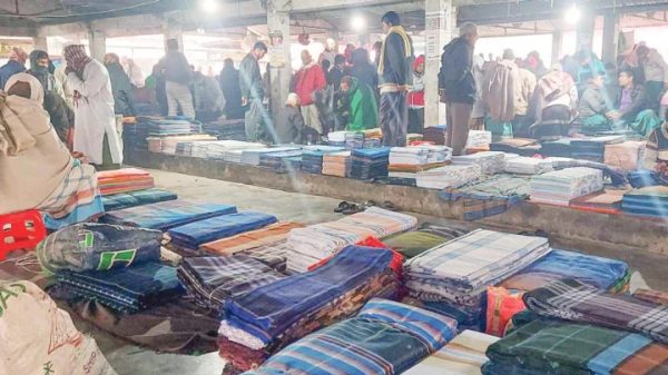 কাগজ প্রতিবেদক ॥ কুষ্টিয়ার কুমারখালী হাটে বিক্রির জন্য রাখা লুঙ্গি, গামছা ও বিছানার চাদর। নিশ্চিত, এ দেশের খুব কম মানুষ আছেন যাঁরা সে এ গ্রামটি সম্পর্কে জানেন। অথচ খোলনলচে বদলে