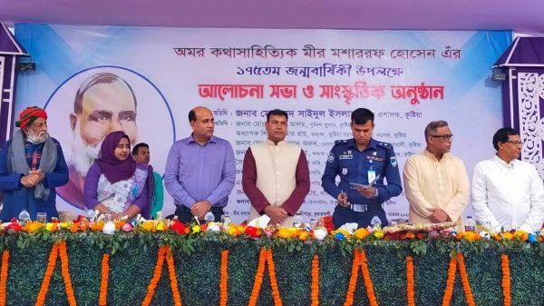 কাগজ প্রতিবেদক ॥ সাহিত্যিক মীর মশাররফ হোসেন রচিত ‘জমিদার দর্পণ’ নাটক মঞ্চস্থের মধ্যদিয়ে শেষ হল দুই দিনব্যাপী অমর কথাসাহ্যিতিক মীর মশাররফ হোসেনের ১৭৫তম জন্মোৎসব। সোমবার রাতে কুষ্টিয়ার কুমারখালী উপজেলার চাপড়া