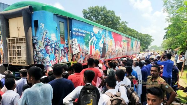 কাগজ প্রতিবেদক ॥ বঙ্গবন্ধু শেখ মুজিব ভ্রাম্যমান রেল জাদুঘর এখন কুষ্টিয়ার কুমারখালী রেলস্টেশন প্রাঙ্গনে। জাতিরজনক বঙ্গবন্ধুর পূর্ণাঙ্গ জীবনী ও মহান স্বাধীনতার ইতিহাস নতুন প্রজন্ম ও সর্বসাধারণের মাঝে ছড়িয়ে দেওয়ার লক্ষে