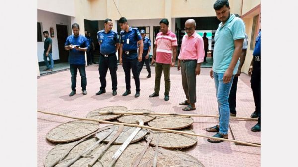 কাগজ প্রতিবেদক ॥ কুষ্টিয়ার কুমারখালী উপজেলার সদকী ইউনিয়নের চরপাড়া গ্রাম থেকে ঢাল, হাঁসুয়া, বল্লমসহ ৩৫টি দেশীয় অস্ত্র জব্দ করেছে পুলিশ। এ সময় দুজনকে গ্রেফতার করা হয়েছে। গোপন সংবাদের ভিত্তিতে শুক্রবার