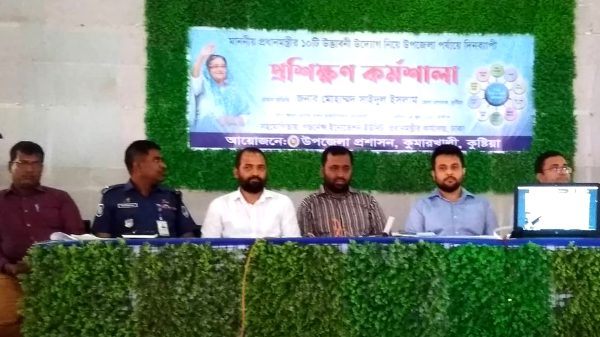 কুমারখালী প্রতিনিধি ॥ প্রধানমন্ত্রী শেখ হাসিনার ১০টি উদ্ভাবনী উদ্যোগ বিষয়ে কুষ্টিয়ার কুমারখালীতে দিনব্যাপী প্রশিক্ষণ কর্মশালা অনুষ্ঠিত হয়েছে। প্রধানমন্ত্রীর কার্যালয়ের গভর্নেন্স ইনোভেশন ইউনিটের সহায়তায় উপজেলা প্রশাসন এ কর্মশালার আয়োজন করে। প্রধানমন্ত্রীর