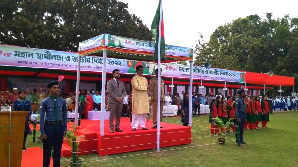 কুমারখালী প্রতিনিধি ॥ বর্ণাঢ্য আয়োজনে কুমারখালীতে মহান স্বাধীনতা ও জাতীয় দিবস উদযাপন করা হয়েছে। এ উপলক্ষে উপজেলা প্রশাসনের আয়োজনে নানাকর্মসূচী পালিত হয়। সুর্যোদয়ের সাথে সাথে ৩১ বার তোপধ্বনীর মাধ্যমে দিবসের