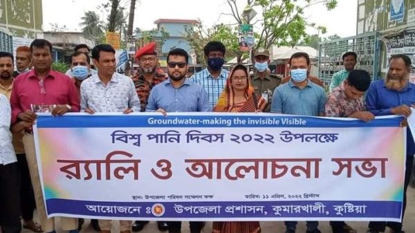কাগজ প্রতিবেদক ॥ কুষ্টিয়ার কুমারখালীতে বিশ্ব পানি দিবস -২০২২ পালিত হয়েছে। “ভূগর্ভস্থ পানি, অদৃশ্য সম্পদ, দৃশ্যমান প্রভাব” এই প্রতিপাদ্য বিষয়কে সামনে রেখে সোমবার সকালে উপজেলা প্রশাসনের আয়োজনে দিবসটি উপলক্ষে বর্ণাঢ্য
