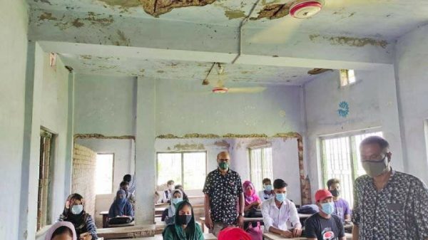 কাগজ প্রতিবেদক ॥ কুষ্টিয়ায় দৌলতপুর উপজেলার হোসেনাবাদ আদর্শ মাধ্যমিক বিদ্যালয়ের ঝুঁকিপূর্ণ ভবনে চলছে শতশত শিক্ষার্থীর পাঠদান। ১৯৮৫ সালে নির্মিত বিদ্যালয়ের দ্বিতল ভবনটি দীর্ঘ দেড় যুগ ধরে ঝুঁকিপূর্ণ অবস্থায় আছে। করোনা