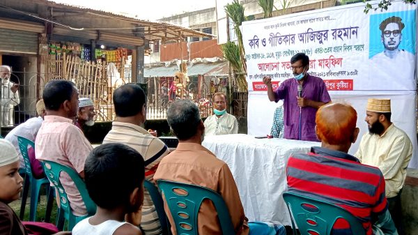 কাগজ প্রতিবেদক ॥ একুশে পদক প্রাপ্ত কবি গীতিকার আজিজুর রহমানের(১৮অক্টোবর,১৯১৪-১২ সেপ্টেম্বর,১৯৭৮) ৪৩তম প্রয়াণ দিবস স্মরণে আলোচনা সভা ও দোয়া অনুষ্ঠিত হয়েছে। রবিবার সকাল ১০টায় কুষ্টিয়া সদর উপজেলার হাটশ হরিপুর বাজারস্থ
