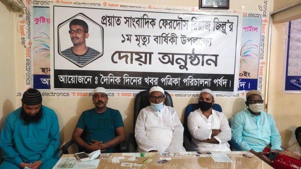 কাগজ প্রতিবেদক ॥ কুষ্টিয়া থেকে প্রকাশিত বহুল প্রচারিত দৈনিক দিনের খবর পত্রিকা সম্পাদক ও প্রকাশক প্রয়াত সাংবাদিক ফেরদৌস রিয়াজ জিল্লুর প্রথম মৃত্যুবার্ষিকী উপলক্ষে দোয়া মাহফিল অনুষ্ঠিত হয়েছে। গতকাল শুক্রবার কুষ্টিয়া