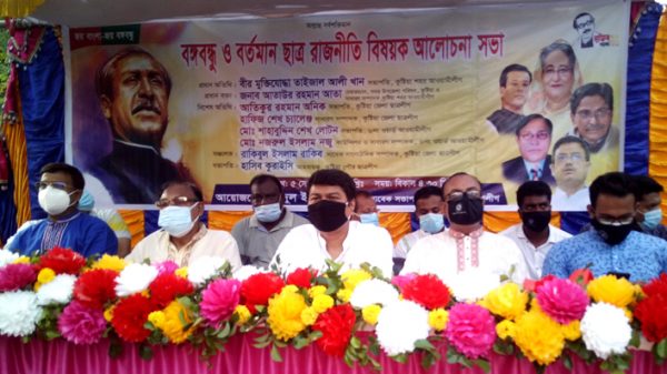 কাগজ প্রতিবেদক ॥ কুষ্টিয়ায় বঙ্গবন্ধু ও বর্তমান ছাত্র রাজনীতি বিষয়ক আলোচনা সভা অনুষ্ঠিত হয়েছে। গতকাল রবিবার বিকেলে শহরের মোল্লাতেঘরিয়া মোড়ে আলোচনা সভা অনুষ্ঠিত হয়। পৌর ছাত্রলীগের আহবায়ক হাসিব কুরাইসির সভাপতিত্বে