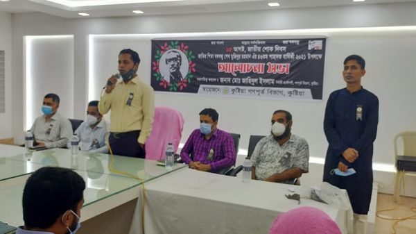 কাগজ প্রতিবেদক ॥ জাতির পিতা বঙ্গবন্ধু শেখ মুজিবুর রহমানের ৪৬তম শাহাদত বার্ষিকী ও জাতীয় শোক দিবস উপলক্ষে আলোচনা করেছে কুষ্টিয়া গণপূর্ত বিভাগ। গতকাল রবিবার বিকেলে গণপূর্ত বিভাগের হলরুমে এই আলোচনা