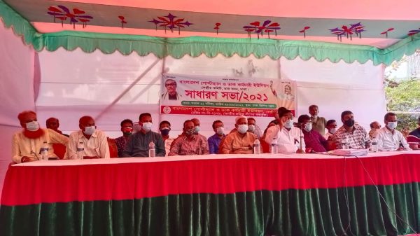 বাংলাদেশ পোস্টম্যান ও ডাক কর্মচারী ইউনিয়ন কেন্দ্র কমিটি রেজিঃ নম্বর বি ২১২৯জাতীয় শ্রমিক লীগের অন্তর্ভুক্ত সংগঠনের নির্বাচনী সাধারণ সভা সকাল ১১ঘটিকার সময় ঢাকা জিপিও চত্বরে অত্র সংগঠনের অস্থায়ী সভাপতি আবুল