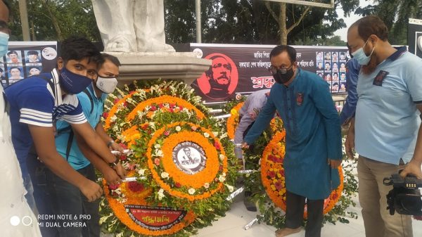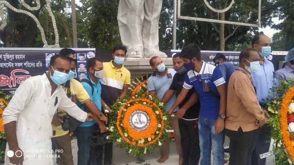 কাগজ প্রতিবেদক ॥ জাতির জনক বঙ্গবন্ধু শেখ মুজিবুর রহমানের ৪৬ তম শাহাদৎবার্ষিকী উপলক্ষ্যে গতকাল সকালে বাংলাদেশ সাংবাদিক অধিকার ফোরাম কুষ্টিয়া জেলা শাখার উদ্যোগে কালেক্টরেট চত্বরে পুষ্পমাল্য দিয়ে শ্রদ্ধাঞ্জলী নিবেদন করেন
