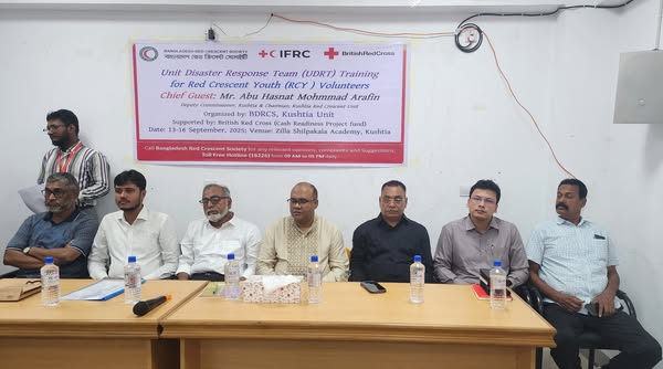 কাগজ প্রতিবেদক ॥ বাংলাদেশ রেড ক্রিসেন্ট সোসাইটির কুষ্টিয়া ইউনিটের উদ্যোগেএবং ব্রিটিশ রেড ক্রসের সহায়তায় গতকাল শনিবার সকালে কুষ্টিয়ায় শুরু হয়েছে ইউনিটডিজাস্টার রেসপন্সটিম প্রশিক্ষণ কর্মসূচি। চারদিন ব্যাপী এ প্রশিক্ষণে অংশ নিয়েছেন