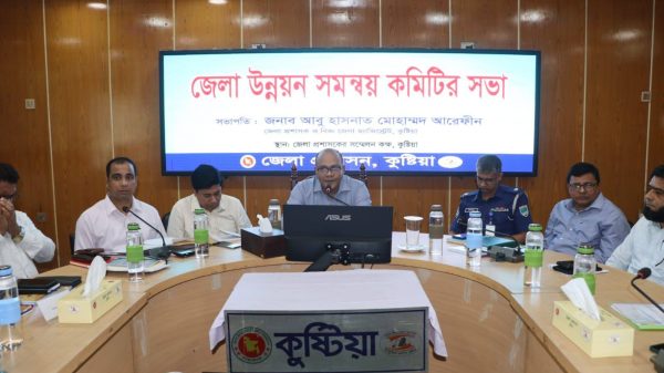 কাগজ প্রতিবেদক ॥ কুষ্টিয়া জেলা প্রশাসক আবু হাসনাত মোহাম্মদ আরেফিন বলেছেন, বর্তমান সময় একটি গুরুত্বপুর্ণ সময়। জেলার সার্বিক উন্নয়নে আইনশৃংখলা পরিস্থিতির নিয়ন্ত্রণের পাশাপাশি উন্নয়নেও আমাদের সচেতন হতে হবে। গতকাল সকালে