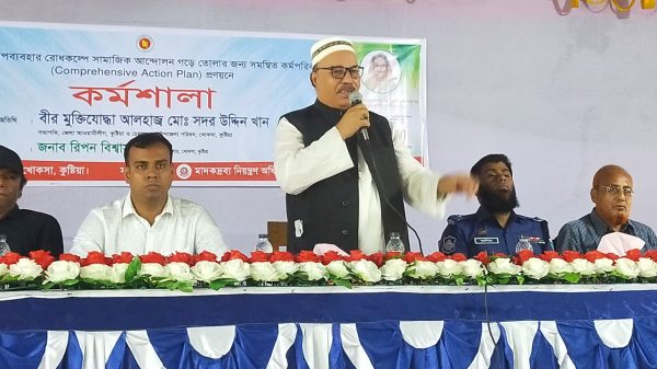 খোকসা প্রতিনিধি ॥ কুষ্টিয়ার খোকসায় মাদকদ্রব্য অপব্যবহার রোধকল্পে সামাজিক আন্দোলন গড়ে তোলার জন্য সমন্বিত কর্ম পরিকল্পনা প্রণয়নের কর্মশালা অনুষ্ঠিত। সোমবার উপজেলা অডিটরিয়ামে খোকসা উপজেলা প্রশাসনের আয়োজনে দিনব্যাপী কর্মশালা উদ্বোধন করেন