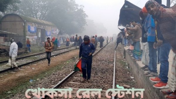 খোকসা প্রতিনিধি ॥ কুষ্টিয়ার খোকসা স্টেশনে এক লাইনে যাত্রী ও মালবাহী দুটি ট্রেন মুখোমুখি হয়ে পরেছিল। অল্পের জন্য ৩ শতাধিক যাত্রী রক্ষা পেলো। বুধ্বার সকাল পেনে ৯ টার দিকে দর্শনা