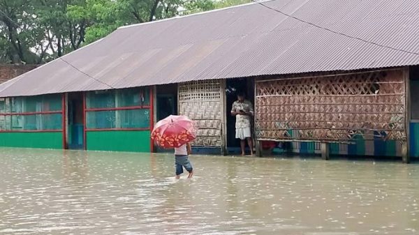 মিরসরাইয়ের ধুম ইউনিয়নের আনন্দবাজার এলাকা। এখানে আটকা পড়েছে মোহাম্মদ ফয়সালের বোনের পরিবার। আশ্রয় পেতে মোবাইল একটি নৌকার জন্য বার বার আকুতি জানান। অনেকে কষ্টে মিরসরাই পৌরসভা থেকে বোনের পরিবারকে উদ্ধারে