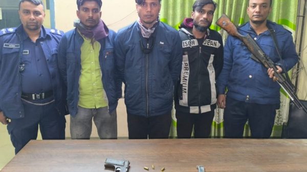 কাগজ প্রতিবেদক ॥ কুষ্টিয়া দৌলতপুর থানা পুলিশ একটি বিদেশী পিস্তল, ৬ রাউন্ড গুলিসহ ৩ জনকে গ্রেফতার করেছে। এ সময় একটি ম্যাগাজিন উদ্ধার করেছে। গতকাল শনিবার দৌলতপুর থানা পুলিশের অফিসার ইনচার্জের