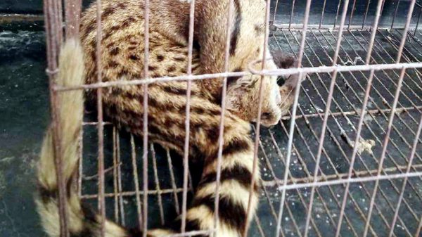 দৌলতপুর প্রতিনিধি ॥ কুষ্টিয়ার দৌলতপুরে খাবারের সন্ধানে বের হয়ে আটকা পড়েছে গন্ধগোকুল নামে বিরল ও বিপন্ন প্রজাতির একটি প্রাণী। বৃহস্পতিবার রাত ১০টার দিকে উপজেলা পরিষদের পার্শ্ববর্তী মানিকদিয়াড় গ্রামের মো. তারিফ