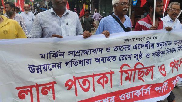 দৌলতপুর প্রতিনিধি ॥ কুষ্টিয়ার দৌলতপুরে ওয়াকার্স পার্টির লাল পতাকা মিছিল ও পথসভা অনুষ্ঠিত হয়েছে। মার্কিন স¤্রাজ্যবাদ ও তাদের এদেশীয় অনুচরদের ষড়যন্ত্র রুখো, উন্নয়নের গতিধারা অব্যাহত রেখে সুষ্ঠ ও শান্তিপূর্ণ নির্বাচন