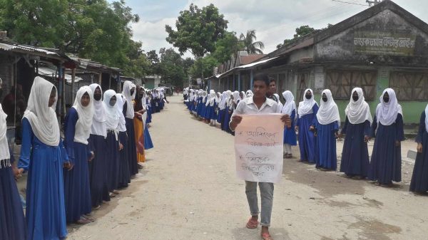 দৌলতপুর প্রতিনিধি ॥ কুষ্টিয়ার দৌলতপুর উপজেলার আড়িয়া ইউনিয়নের ছাতারপাড়া মাধ্যমিক বিদ্যালয়ের সিনিয়র সহকারী শিক্ষক সহিদুল হক (৫৭) কে বিদ্যালয়ের অফিস কক্ষে মারধরের ঘটনার প্রতিবাদে জড়িতদের শাস্তির দাবিতে মানববন্ধন করেছে বিদ্যালয়ের