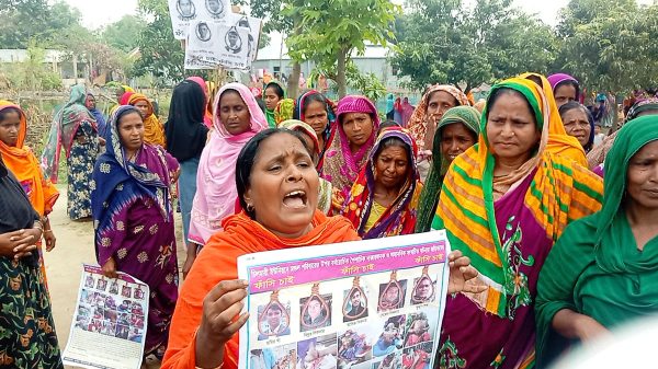 দৌলতপুর প্রতিনিধি ॥ কুষ্টিয়ার দৌলতপুরের চিলমারীর চরে প্রতিপক্ষের হামলা ও অগ্নিসংযোগে অগ্নিদগ্ধ হয়ে নিহত ফারুক মন্ডলের লাশ নিয়ে বিক্ষোভ সমাবেশ ও মানববন্ধন করেছে বিক্ষুব্ধ এলাকাবাসী। গতকাল শুক্রবার সকাল সাড়ে ১০টায়