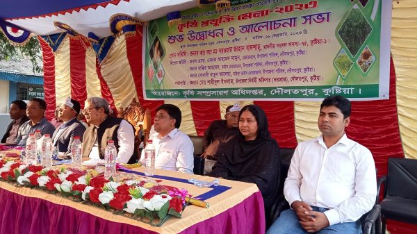 দৌলতপুর প্রতিনিধি ॥ কুষ্টিয়ার দৌলতপুরে ৩দিন ব্যাপী কৃষি ও প্রযুক্তি মেলার উদ্বোধন করা হয়েছে। বৃহত্তর কুষ্টিয়া ও যশোর অঞ্চল কৃষি উন্নয়ন প্রকল্পের আওতায় গতকাল রবিবার বিকেল ৪টায় এ মেলার উদ্বোধন