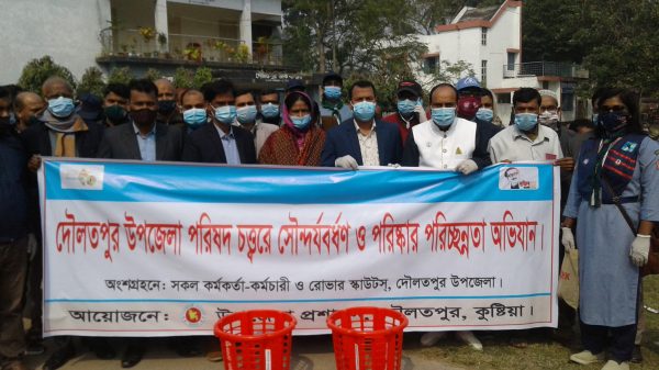 দৌলতপুর প্রতিনিধি : কুষ্টিয়ার দৌলতপুর উপজেলা পরিষদ চত্ত্বরে সৌন্দর্যবর্ধণ ও পরিস্কার পরিচ্ছন্নতা অভিযান পরিচালিত হয়েছে। গতকাল মঙ্গলবার বেলা ১১টায় উপজেলা পরিষদ চত্ত্বরে এ অভিযান পরিচালিত হয়। সৌন্দর্যবর্ধণ ও পরিস্কার পরিচ্ছন্নতা