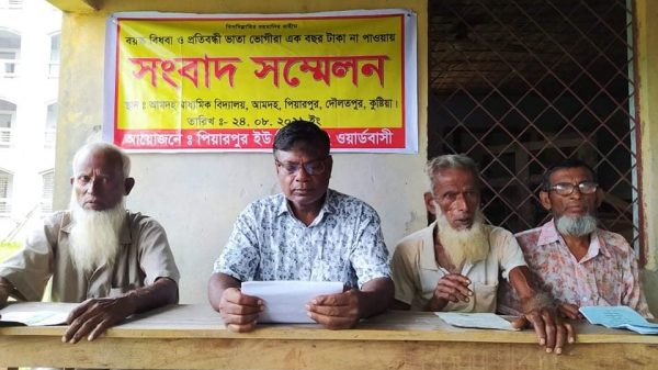 বিশেষ প্রতিবেদক ॥ কুষ্টিয়ার দৌলতপুরে প্রতিবন্ধী, বিধবা ও বয়স্ক ভাতার টাকা না পেয়ে সংবাদ সম্মেলন করেছেন ভুক্তভোগীরা। মঙ্গলবার সকাল ১১ টায় উপজেলার পিয়ারপুর ইউনিয়নের ৩ নং ওয়ার্ডের পুরাতন আমদহ মাধ্যমিক