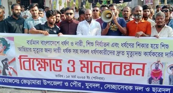 ওলি ইসলাম, ভেড়ামারা থেকে ॥ দেশব্যাপী ধর্ষণ ও শিশু নির্যাতন প্রোতিরোধ এবং ধর্ষণের শিকার মাগুরার শিশু আছিয়ার মৃত্যুর জন্য দায়ী ধর্ষকদের আইনের আওতায় নিয়ে দ্রুত ফাঁসীর দাবীতে কুষ্টিয়ার ভেড়ামারায় এক
