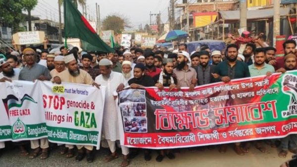 শ্লোগানে শ্লোগানে মুখরিত রাজপথ ওলি ইসলাম ॥ ফিলিস্তিনের নিরীহ নিরস্ত্র মজলুম মুসলমানদের উপর সন্ত্রাসী রাষ্ট্র ইসরাইলের বর্বরোচিত সন্ত্রাসী হামলার তীব্র প্রতিবাদ জানিয়ে কুষ্টিয়ার ভেড়ামারায় মিছিল ও প্রতিবাদ সমাবেশ করেছে তৌহিদী