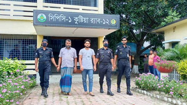 ভেড়ামারা প্রতিনিধি ॥ কুষ্টিয়ার ভেড়ামারায় রক্সি পেইন্টের এরিয়া ম্যানেজার লোকমান হোসেন হত্যাকান্ডের মূল অভিযুক্ত বাবা-ছেলেকে গ্রেপ্তার করেছে র?্যাব-১২। গতকাল রোববার সাভারের একটি বাসা থেকে তাঁদের গ্রেপ্তার করা হয়। পরে জিজ্ঞাসাবাদ