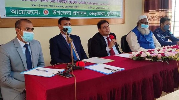 ওলি ইসলাম, ভেড়ামারা প্রতিনিধি ॥ কুষ্টিয়ার ভেড়ামারা উপজেলা প্রশাসনের আয়োজনে বিভিন্ন দপ্তরের কর্মকর্তা, জনপ্রতিনিধি ও সুধীজনদের খুলনা বিভাগীয় কমিশনারের সঙ্গে মতবিনিময় সভা অনুষ্ঠিত হয়েছে। গতকাল বৃহস্পতিবার সকালে উপজেলা পরিষদের সভাকক্ষে