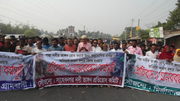 কাগজ প্রতিবেদক ॥ কুষ্টিয়ার মিরপুরে পদ্মা নদীর ভাঙ্গন রোধ করার জন্য অনুমোদিত প্রকল্পটি অনিবার্য কারনবশত বিলম্ব হওয়ার প্রতিবাদে মানব বন্ধন কর্মসূচি পালন করা হয়েছে।গতকাল বুধবার (০৪ ডিসেম্বর) সকাল ১০টায় কুষ্টিয়ার