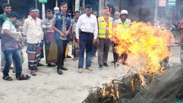 মিরপুর প্রতিনিধি ॥ দেশীয় মাছের প্রজনন ও জীববৈচিত্র্য রক্ষায় কুষ্টিয়ার মিরপুর উপজেলার মাজিহাট ব্রীজ হতে নলডাঙ্গা ষ্টীল ব্রীজ পর্যন্ত ও ক্যানালপাড়া এলাকা থেকে অবৈধ চায়না দুয়ারী জাল জব্দ করে পুড়িয়ে